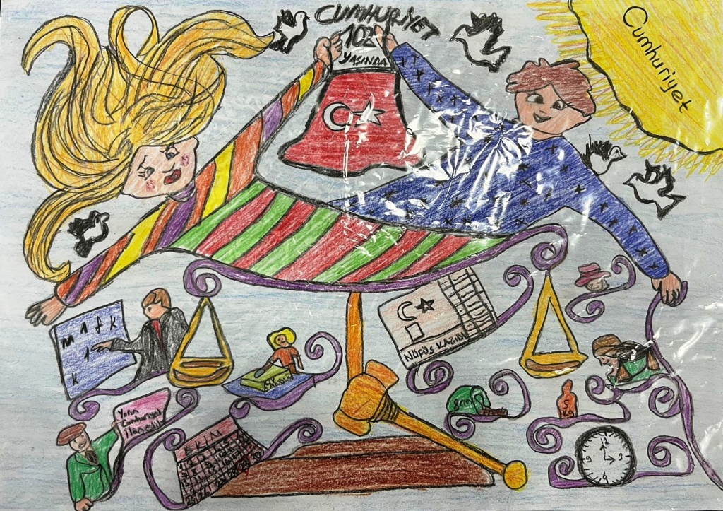 ' Köklü geçmişten Güçlü Cumhuriyete' temalı resim yarışmasında okulumuz 4/A sınıfı öğrencisi Kuzey AKINALP İlçede 2. olmuştur. Öğrencimizi kutluyor başarılarının devamını diliyoruz.